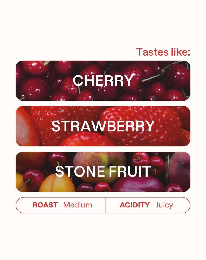 This Supernatural lot from Banko Chelchele is super fruity in all the best ways. Think juicy strawberry, stone fruit, and a cup that’s as vibrant as it is sweet. It’s the kind of flavour profile that first made baristas fall head over heels for Ethiopian naturals, and it still delivers that same spark of excitement today.